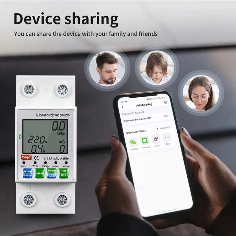 SHGO-Tuya 63A 2P интеллектуальный релейный переключатель цепи питания, защита от утечки тока повышенного/пониженного напряжения, счетчик энергии WIFI, кВтч