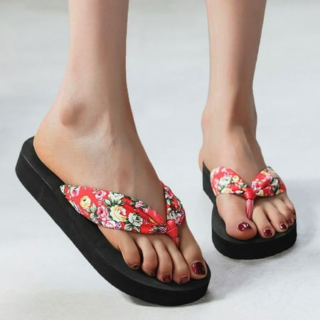 Aayomet Sandals Boho Slippers Beach Fashion Satin Platform Wedge Strap Flip-Flops Summer Women s Women Flip Flops Size 8 Cushion Red 6.5