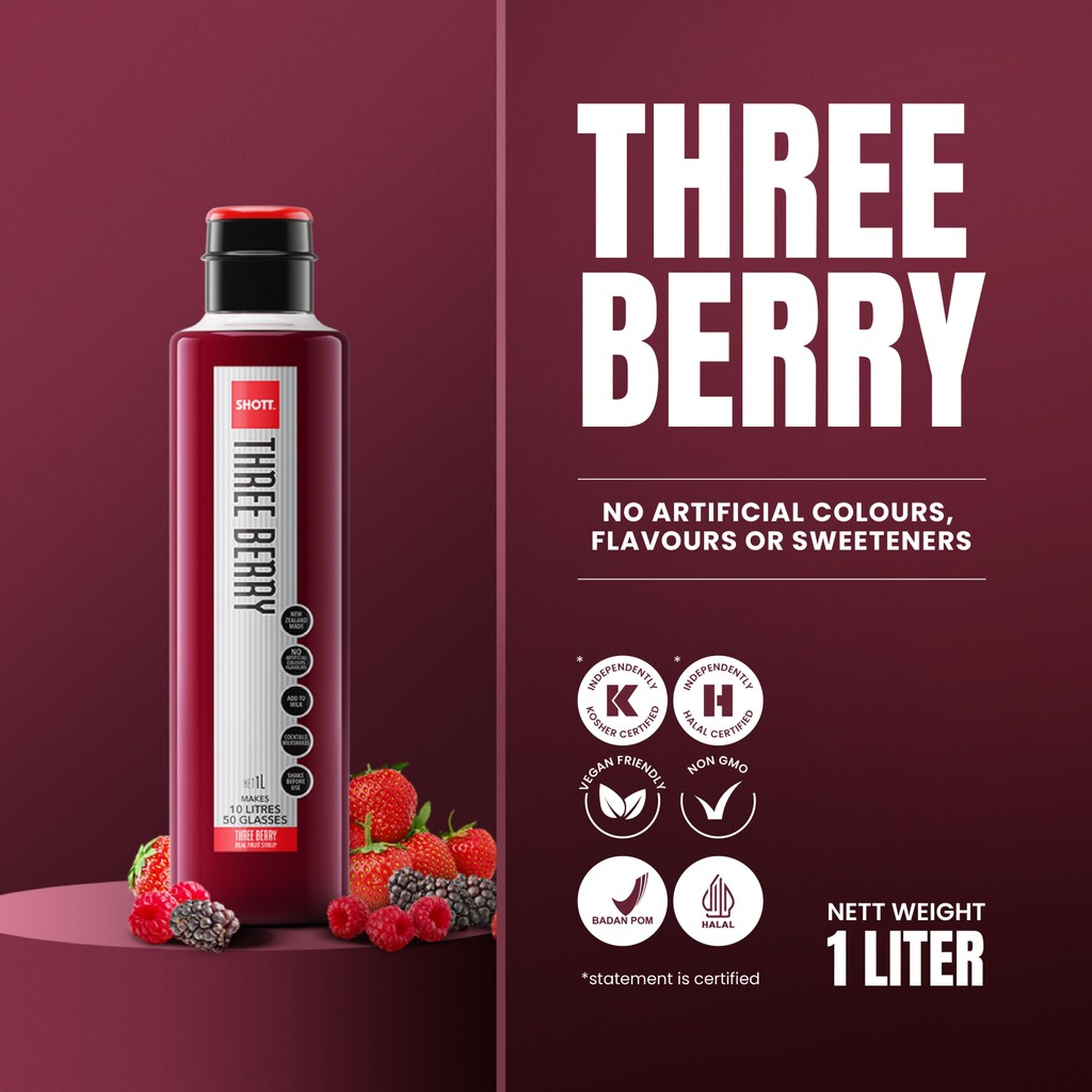 Perpaduan sempurna dari buah Boysenberi, Raspberi dan Stroberi yang bisa ditambah ke smoothie atau susu untuk minuman yang menyejukkan di siang hari. Campuran buah beri konsentrat ini adalah senjata rahasia yang dapat semua gunakan untuk saus masak, dalam marinade dan membuat kue!