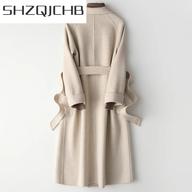 SHZQ осень элегантное шерстяное пальто женские зимние пальто 2021 корейская мода Женская кашемировая длинная куртка + пояс тонкая верхняя одеж...
