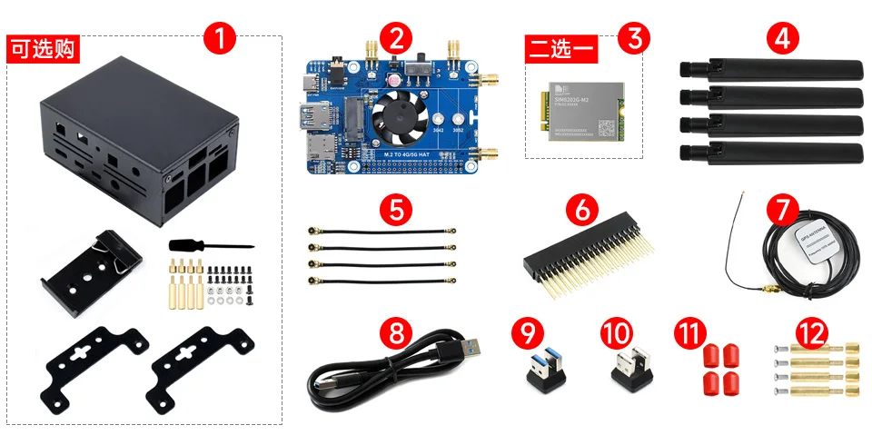 SIM8202G-M2 5G HAT (B) с чехлом, для Raspberry Pi, Snapdragon X55, Четырехъядерные антенны 5G NSA, Многополосная, Совместимость с фотографиями 4G/3G