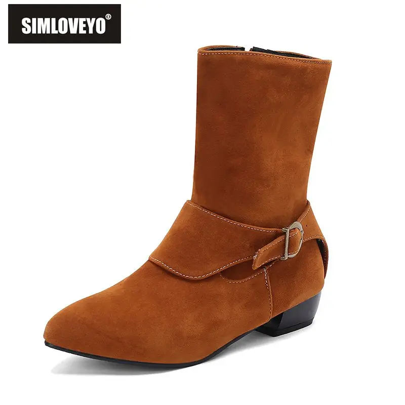 SIMLOVEYO новые замшевые женские ботинки до середины икры из флока с острым носком, 3 см, на массивном каблуке, на молнии, с пряжками на ремне, большой размер 48, зеленый, на каждый день, осень