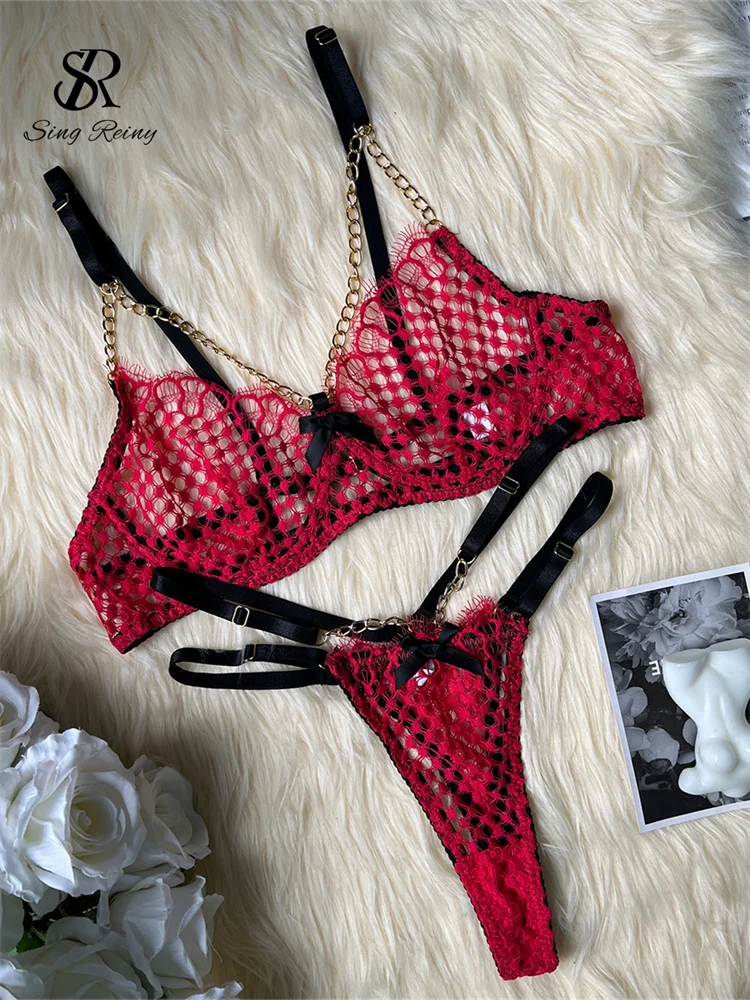 SINGREINY порно сетчатые комплекты нижнего белья с вырезами, модные клубные пижамы с ремешками, женская цепочка с бантом, прозрачное сексуальное нижнее белье, костюмы