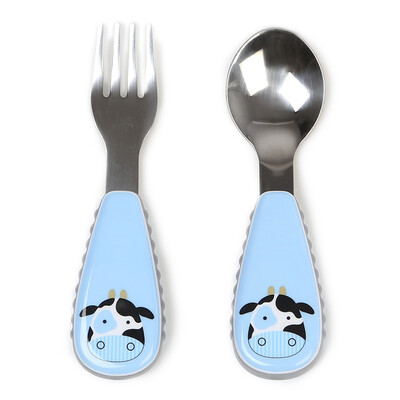 SKIP HOP симпатичный зоопарк из нержавеющей стали вилка ложка столовая посуда комбинация мультяшный узор детская вилка ложка костюм - коровы более 12 месяцев импорт в США