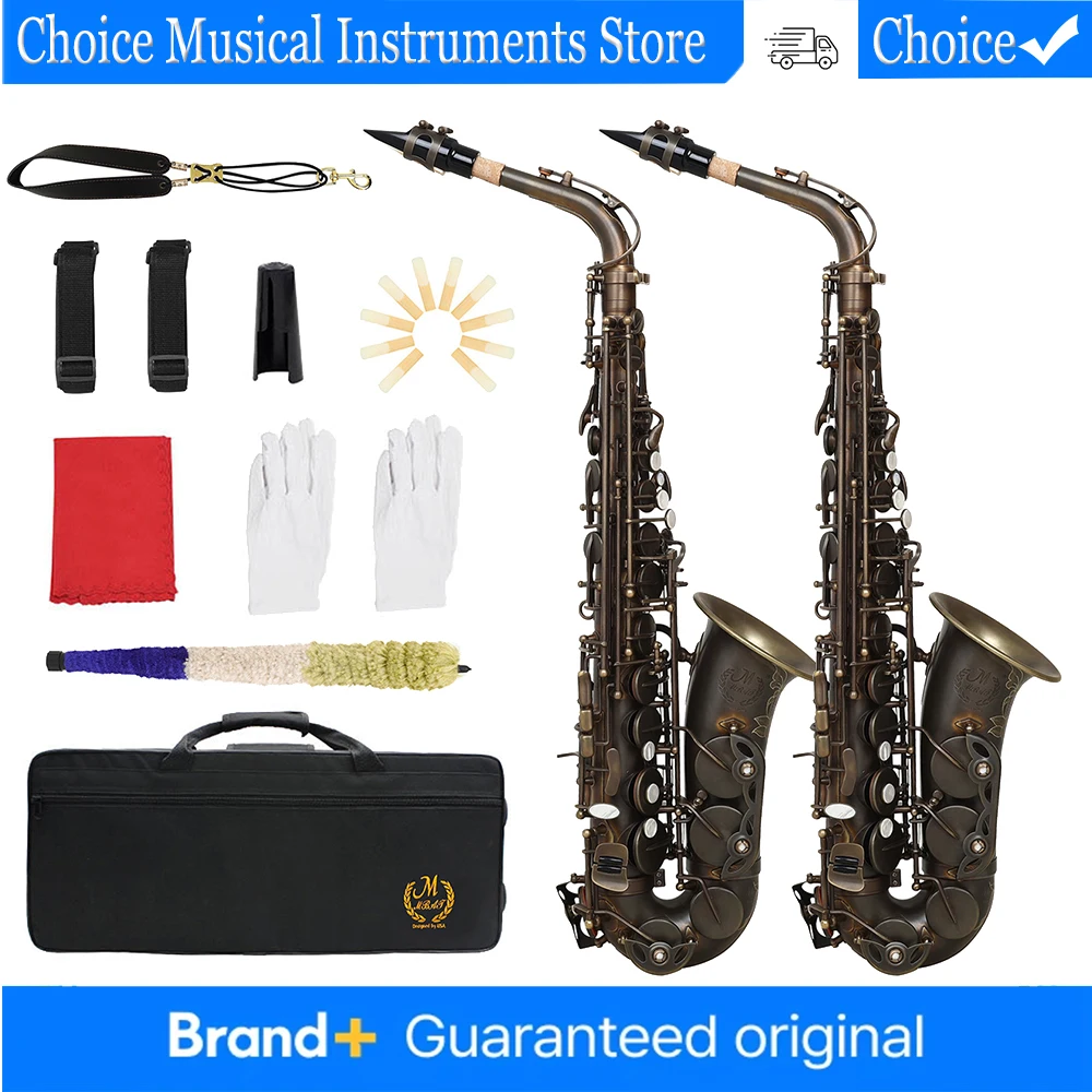 SLADE Alto Saxophone Professional Bronze Bend Eb E-flat Alto Saxophone Sax Shell Key Carve Pattern with Case Gloves Kit