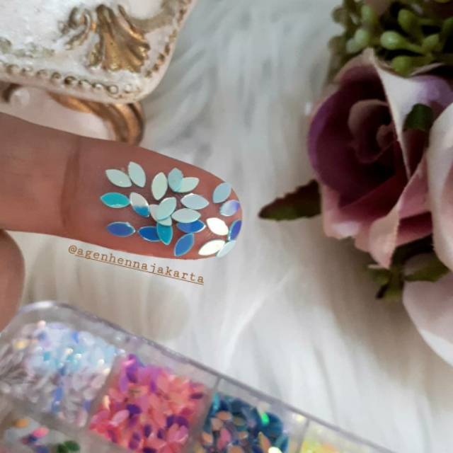 variasi oval aksesoris mini nail art dalam 1 wadah, praktis buat teman yg ingin hias kukunya biar makin chantixx