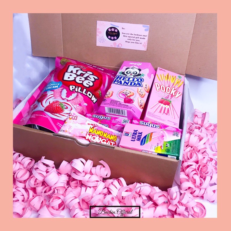 #snackbox #kado #kadocewe #giftbox #hampers #kadowisuda #hampersmurah #pink