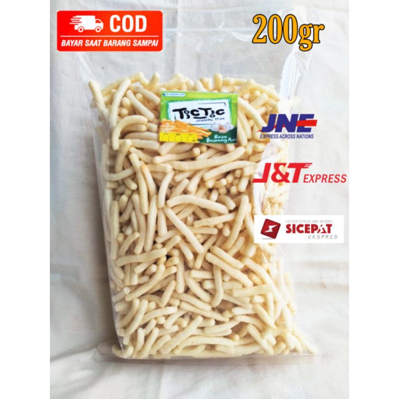 Snack original tic-tic bentuk stik kecil rasa bawang, kode kemasan : S netto 180gr. isinya produk asli siantar top hanya di repack kemasan baru. Harga sudah termasuk packing bubblewrap+dus.
