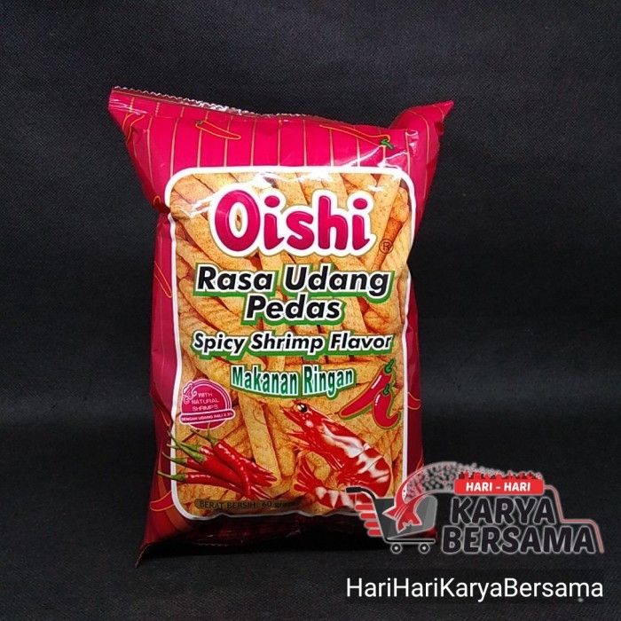 Oishi Udang pedas merupakan makanan ringan varian snack stik renyah dari Oishi. Terbuat dari bahan-bahan pilihan berkualitas yang diolah secara higienis dan modern sehingga menghasilkan snack renyah dengan kualitas rasa yang istimewa.