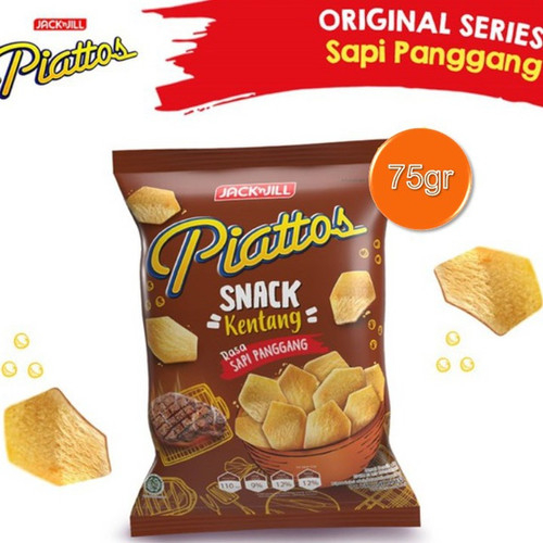 Piattos merupakan satu merk snack kentang yang punya banyak rasa, berikut varian rasa terfavoritnya adalah Piattos Rasa Sapi Panggang yang cocok dijadikan cemilan santai saat kumpul atau acara piknik bersama teman. Cemilan gurih yang satu ini mungkin sudah tidak asing di Indonesia. Keripik kentang atau yang lebih dikenal potato chips merupakan snack yang setidaknya dapat sedikit mengenyangkan, karena dari kentang tersebut ada kandungan karbohidrat. Tentu agar rasanya lebih bervariasi maka snack kentang ini banyak dicampur dengan bumbu-bumbu spesial yang dapat menambah cita rasa saat di makan.