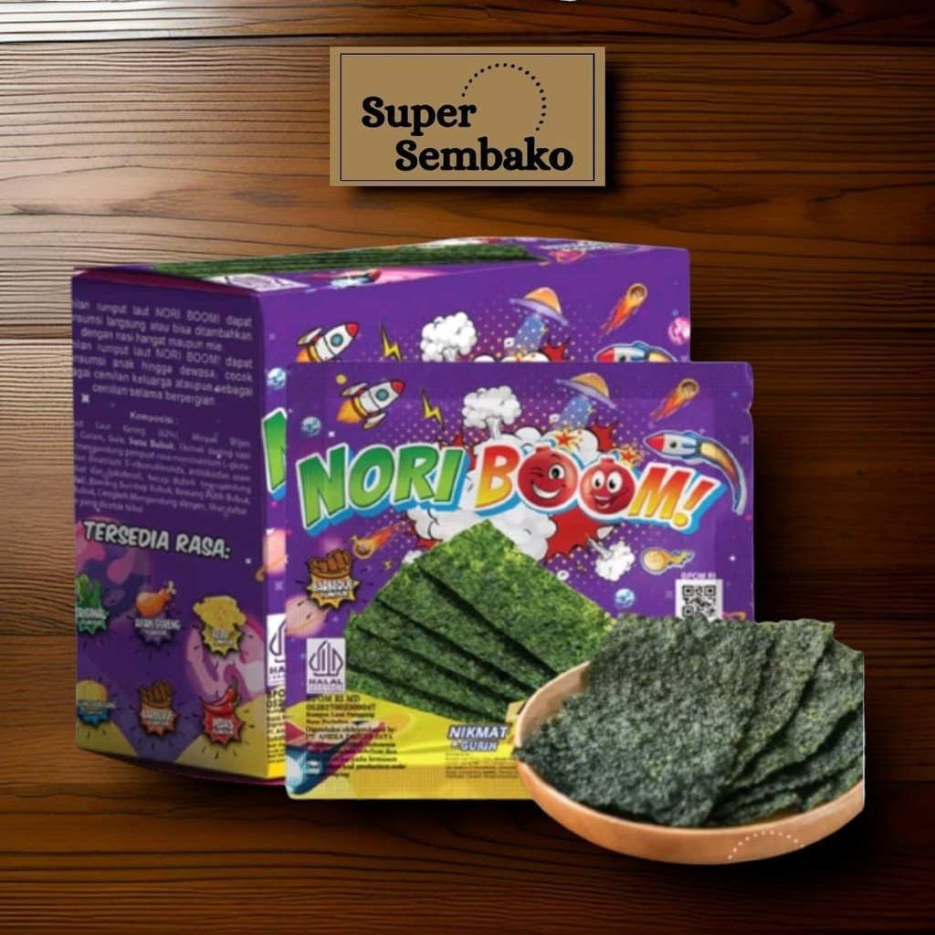 Seaweed Nori Boom 3gr Per Box (isi 12 pcs) Nori Boom Cemilan Rumput Laut Halal Nori Crispy Java Super Food adalah Nori Crispy yang terbuat dari bahan - bahan yang berkualitas serta memiliki rasa yang enak dan lezat. Nori Boom Merupakan cemilan rumput laut dengan kulit lumpia. Nori Cemilan rumput Laut cocok untuk dijadikan teman ngemil untuk beraktivitas, Seperti menonton TV, Belajar dan Bersantai Nori Crispy Seaweed Snack Rumput Laut Halal Nori Crispy Java Super Food adalah Nori Crispy yang terbuat dari bahan - bahan yang berkualitas serta memiliki rasa yang enak dan lezat. Nori Crispy Java Super Food Merupakan cemilan rumput laut dengan kulit lumpia. Nori Crispy cocok untuk dijadikan teman ngemil untuk beraktivitas, Seperti menonton TV, Belajar dan Bersantai
