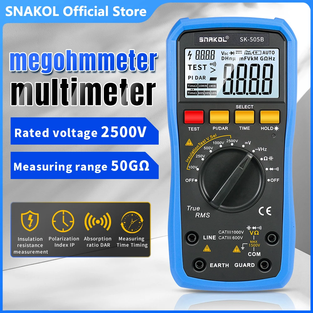 SNAKOL SK-505B 2-in-1 Insulation Resistance Meter Multi-function Digital Multimeter 2500V Megohmmeter Resistor Tester Auto Range