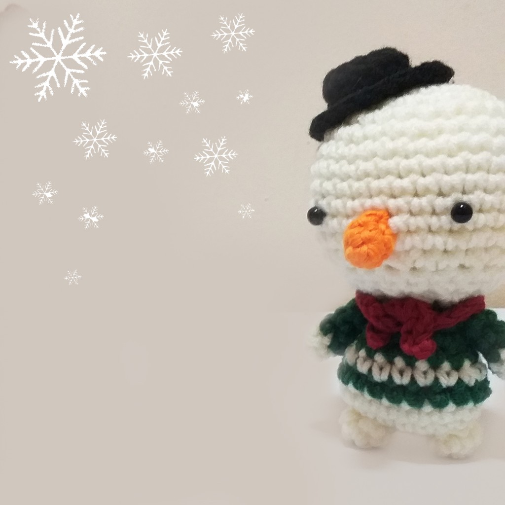 1 Handmade crochet snowman (available as xmas tree decoration or keychain or doll) + pouch for storing them