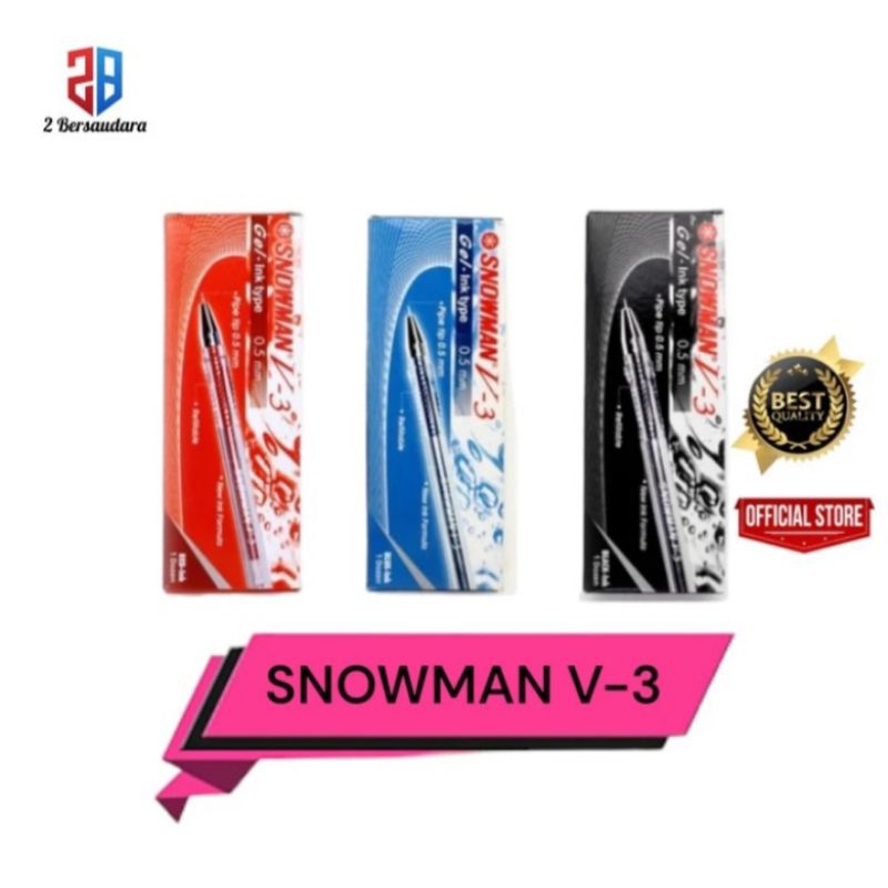 Pulpen Snowman V-3 merupakan pulpen yang sangat sering digunakan dengan grip yang nyaman dan tinta yang bagus serta harga terjangkau, banyak user senang menggunakan pulpen ini.