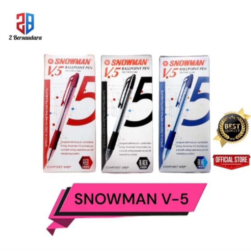 Snowman V-5 merupakan ballpoint dengan ujung 0,7 mm yang dirancang dalam kombinasi teknologi dan desain modern untuk memberikan Anda kenyamanan saat menulis sehingga menghasilkan tulisan yang halus & rapi.