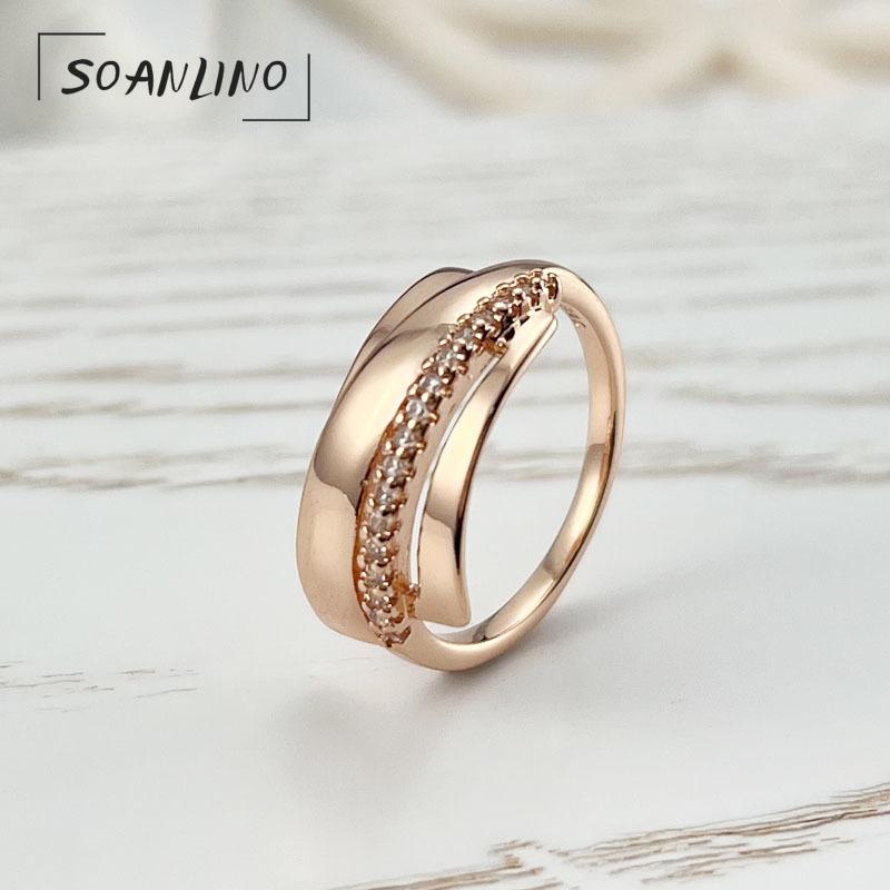 SOANLINO модное индивидуальное мужское и женское кольцо с глянцевым цирконом из розового золота
