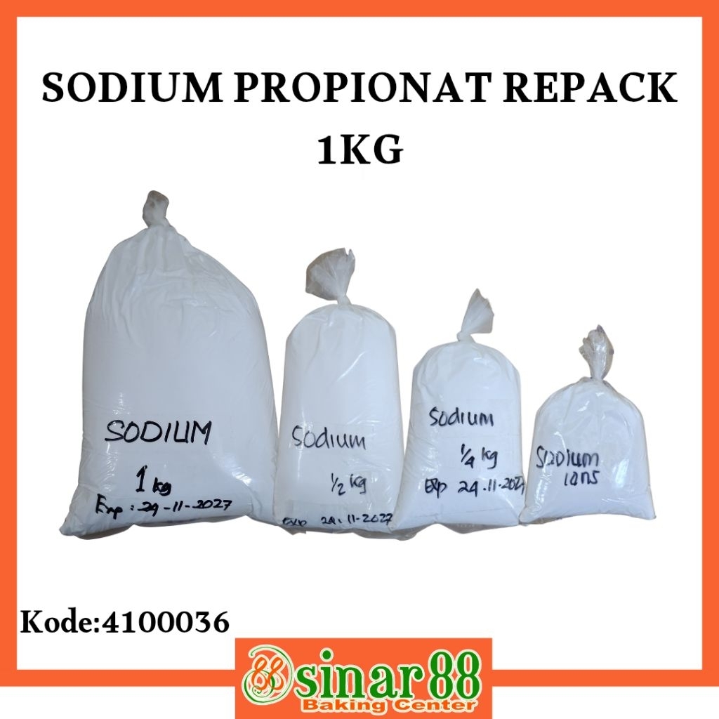 Natrium Propionat (Sodium Propionate) yang dijual oleh Sinar 88 Baking Center umumnya digunakan sebagai pengawet makanan, khususnya dalam produk roti dan kue.