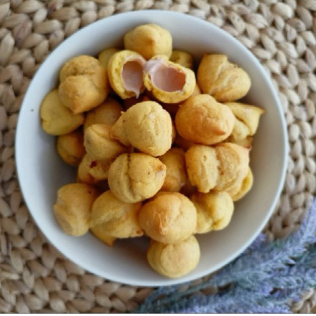 Soes coklat isitoples_official adalah soes kering dengan isi PASTA BLUEBERRY yg enak merupakan salahsatu cemilan favourite tua& muda.