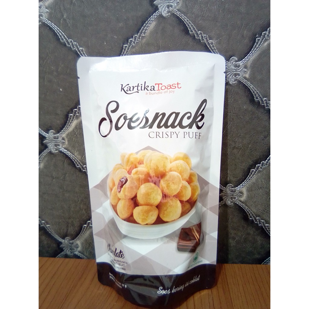 Soesnack coklatKartika Toast adalah soes kering dengan krim coklat yang special, Soes ini sangat lembut, renyah dan disukai banyak orang. Cocok untuk oleh-oleh ataupun hidangan tambahan saat berkumpul dengan orang terkasih.Cemilan lezat dari Kartika Sari udah gak diragukan lagi deh kelezatannya. Sekarang dikemas dengan kemasan cantik yang super higienis sehingga sangat cocok dijadikan buah tangan untuk orang-orang terdekat.