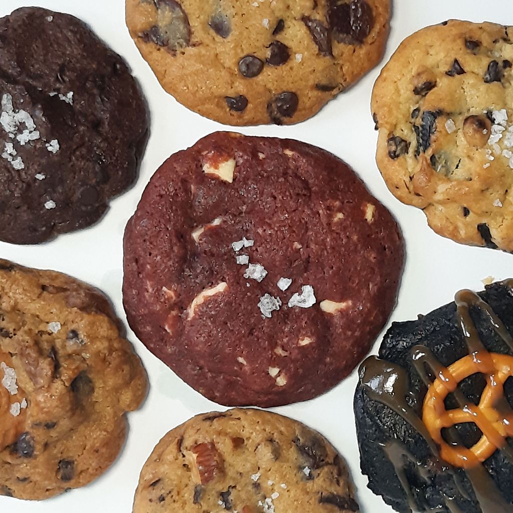 Tofee: Black Soft Baked Cookie dengan isian tofee dan topping salted caramel + pretzel