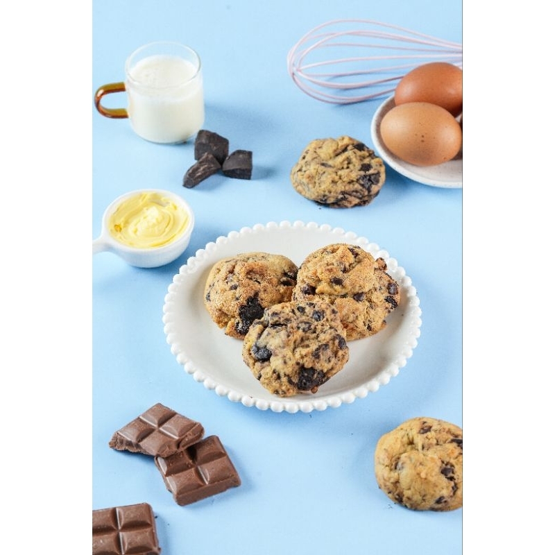soft cookies dengan variant original, ditambah topping potongan dark coklat dan chococip