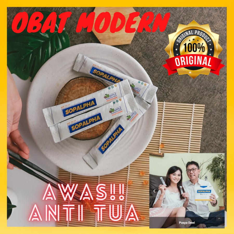 SOPALPHA adalah minuman serbuk yang sudah lulus uji labs BPOM serta segala jenis produksi ber-standar GMP dan titik kritis nya diawasi oleh HACCP. SOPALPHA juga sudah bersertifikat HALAL MUI. SOPALPHA mengandung bahan utama yang didatangkan langsung dari Jepang bernama Salmon Ovary Peptide dan juga Ekstrak Apple Stem Cell yang keduanya sudah terkenal khasiatnya. SOPALPHA bisa dikonsumsi siapa saja, terutama untuk menjaga kesehatan tubuh luar dan dalam, serta membantu penyembuhan penyakit yang disebabkan oleh penuaan (degeneratif).