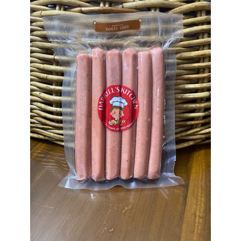 Sosis sapi buatan rumahan. Dibuat dengan daging segar dan tanpa pengawet, msg, pemanis & pewarna. Aman dikonsumsi oleh anak, ibu hamil & menyusui.