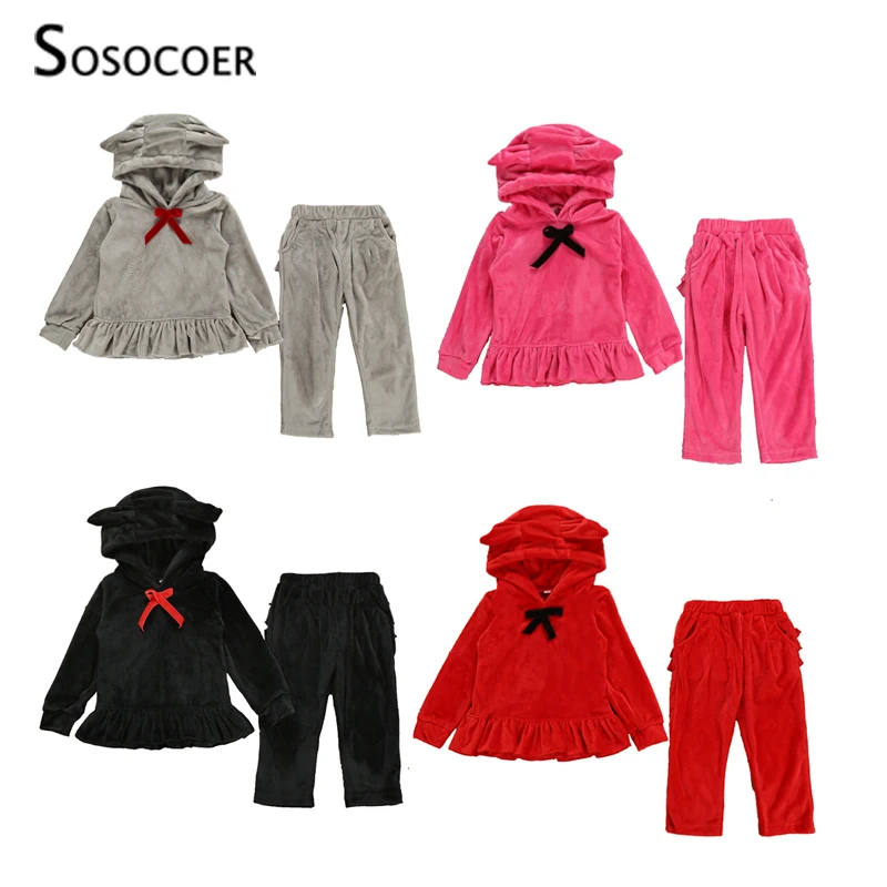 SOSOCOER/комплекты одежды для маленьких девочек Осенняя модная детская одежда из 2 предметов с золотым бархатом милое платье с капюшоном + штаны...