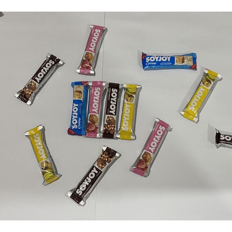 Soyjoy adalah cemilan sehat yang terbuat dari Kedelai. memiliki varian seperti Stawberry, white Camadia , dan almond & Chocolate