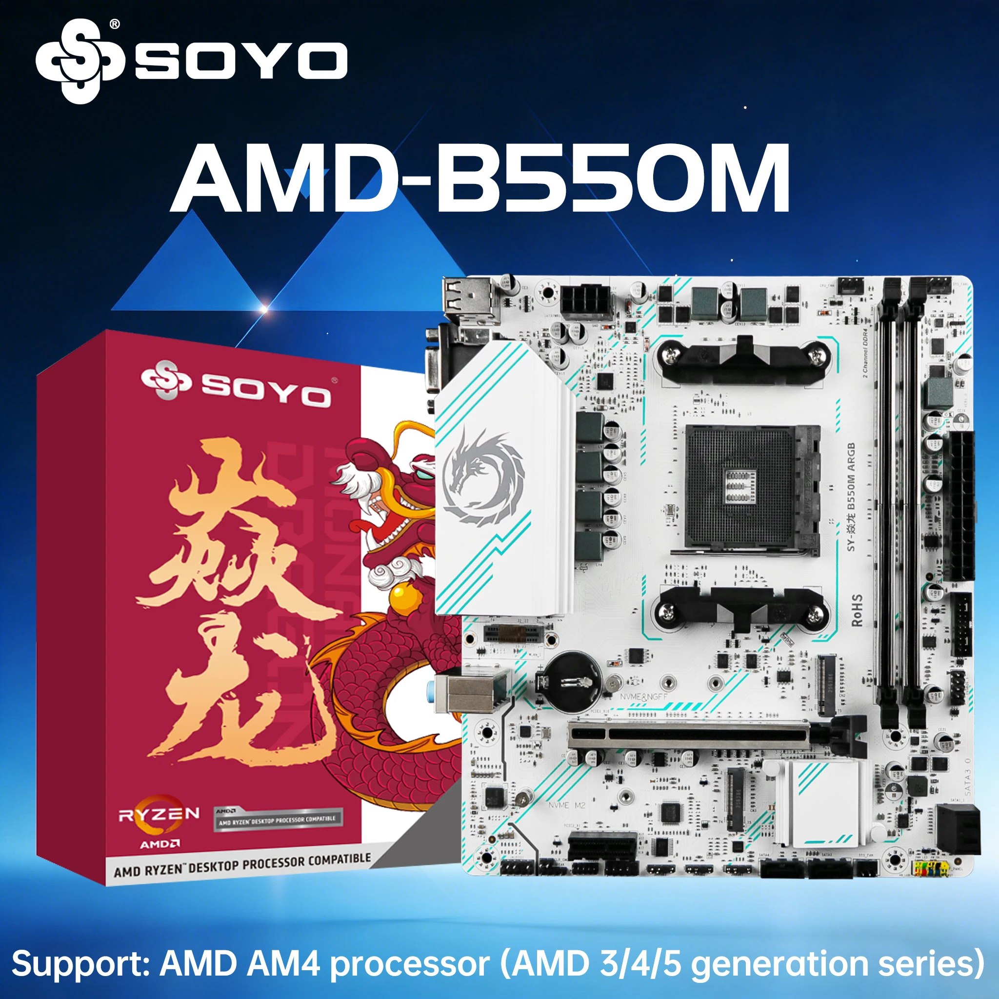 SOYO AMD B550M Gaming Motherboard USB3.1 M.2 Nvme Sata3 DDR4 Dual Channel Supports RYZEN R3 R5 R7 3000 4000 5000 CPU AM4 Socket
