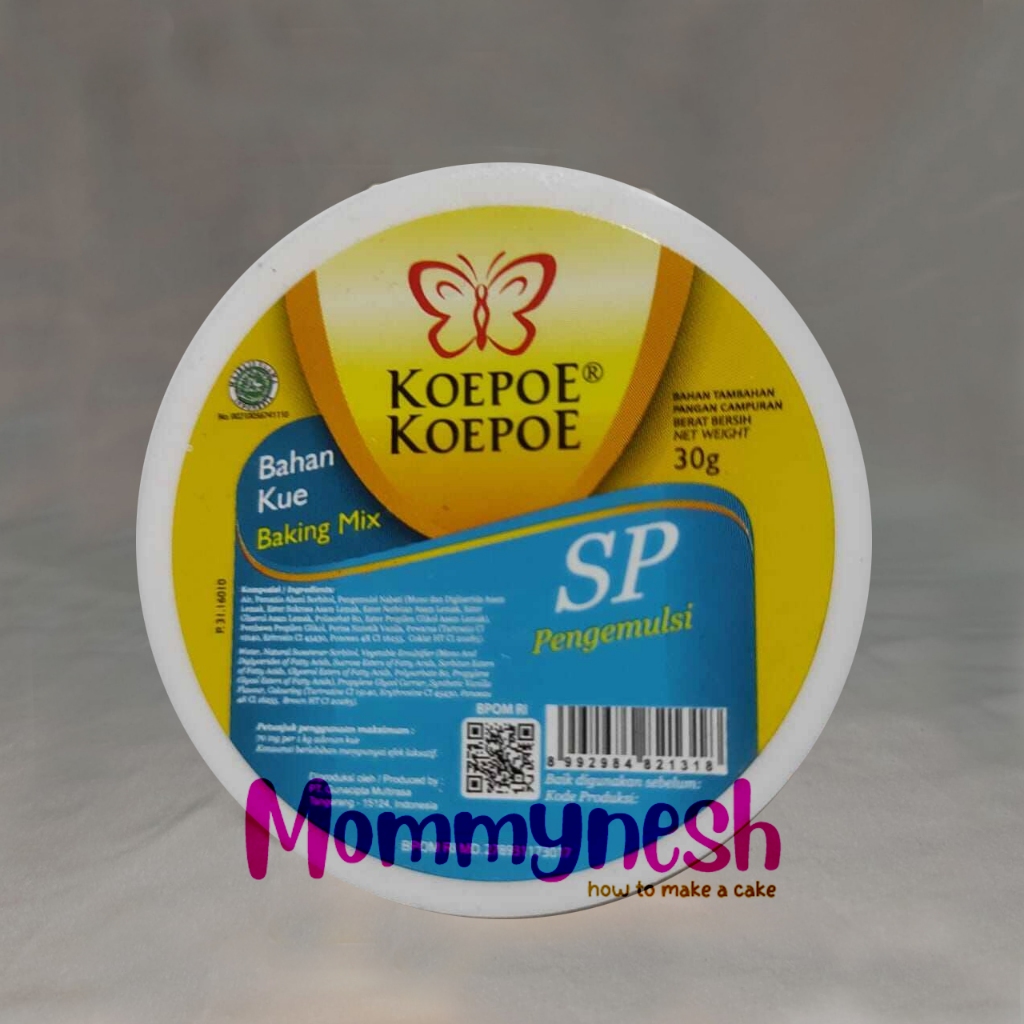 SP emulsifier cap koepoe koepoe dapat menstabilkan emulsi antara minyak dan air pada adonan kue, membantu melembutkan pori pori pada kue atau roti. Selain itu juga membuat adonanmu tidak turun saat dikocok.