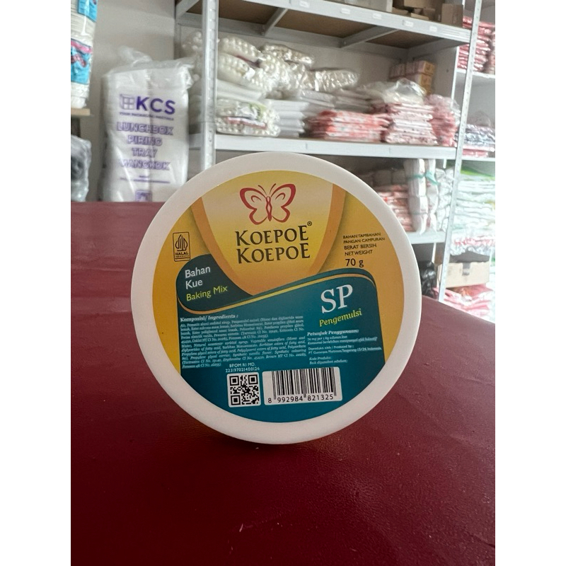 Deskripsi Produk SP Koepoe Koepoe digunakan sebagai pengikat, pelembut dan juga pengembang kue. Dibuat dari bahan pilihan yang bermutu tinggi untuk kesempurnaan kue anda.