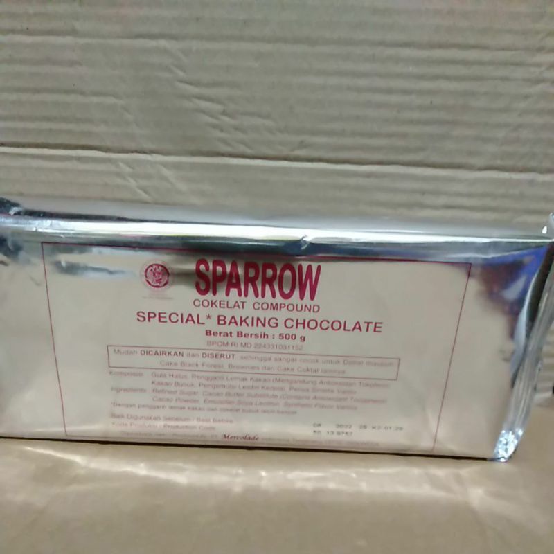 Sparrow Special Baking Chocolate , adalah coklat compound untuk diserut sebagai toping minuman , hiasan kue cake, blackforest,donat dll.