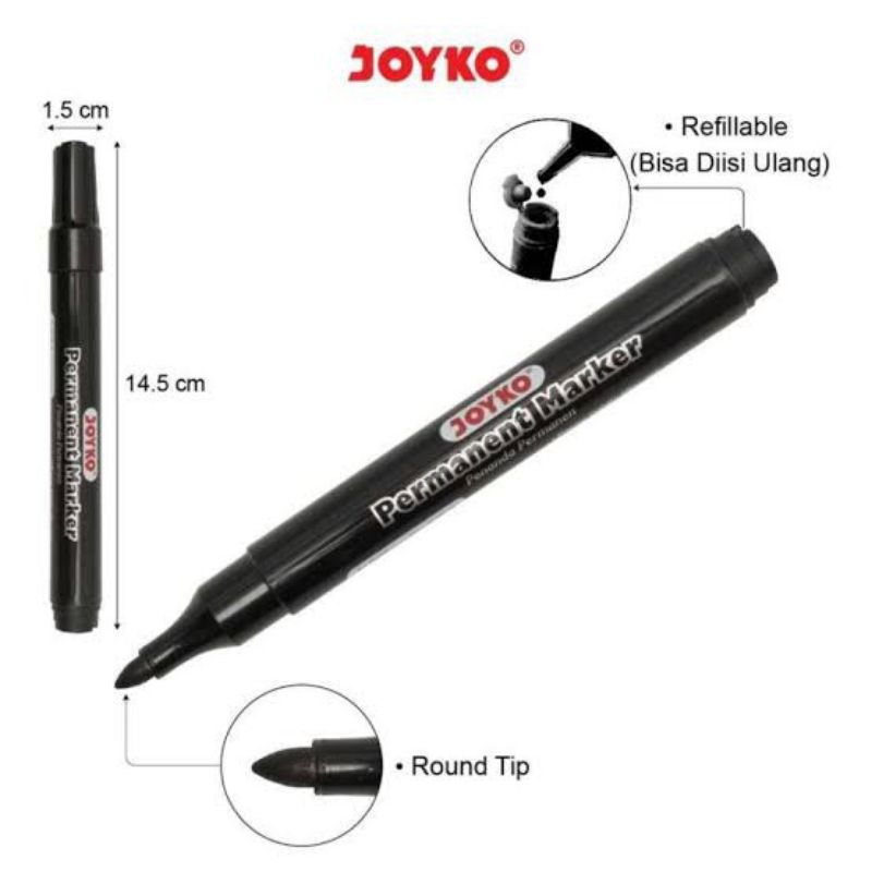 >Permanent Marker Spidol Permanen Round Tip Joyko Refillable