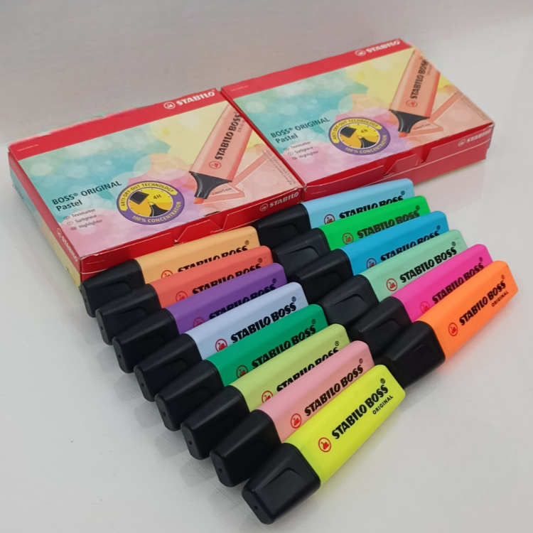 STABILO BOSS ORIGINAL dilengkapi teknologi Anti-Dry-Out, produk tidak kering walau dibiarkan terbuka tanpa penutup selama 4 jam.