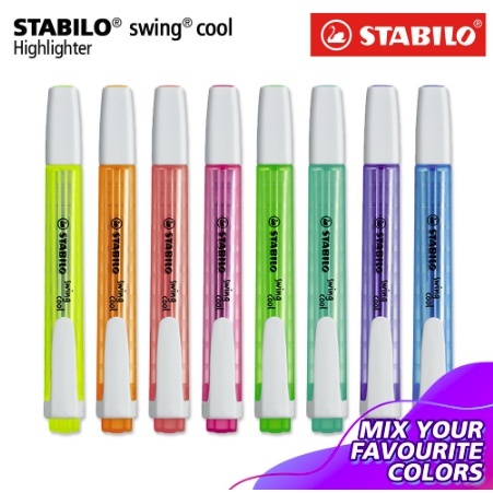 Jadikan catatanmu lebih berwarna dan menyenangkan dengan STABILO Swing Cool, salah satu highlighter yang paling populer di Eropa!