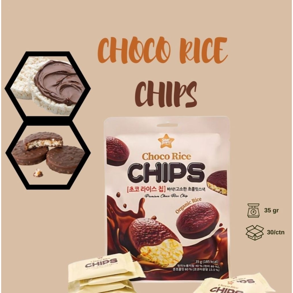 Star Pops Choco Rice Chips adalah camilan ringan yang terbuat dari beras renyah berlapis cokelat. Camilan ini memiliki rasa manis dan renyah yang cocok untuk segala usia.