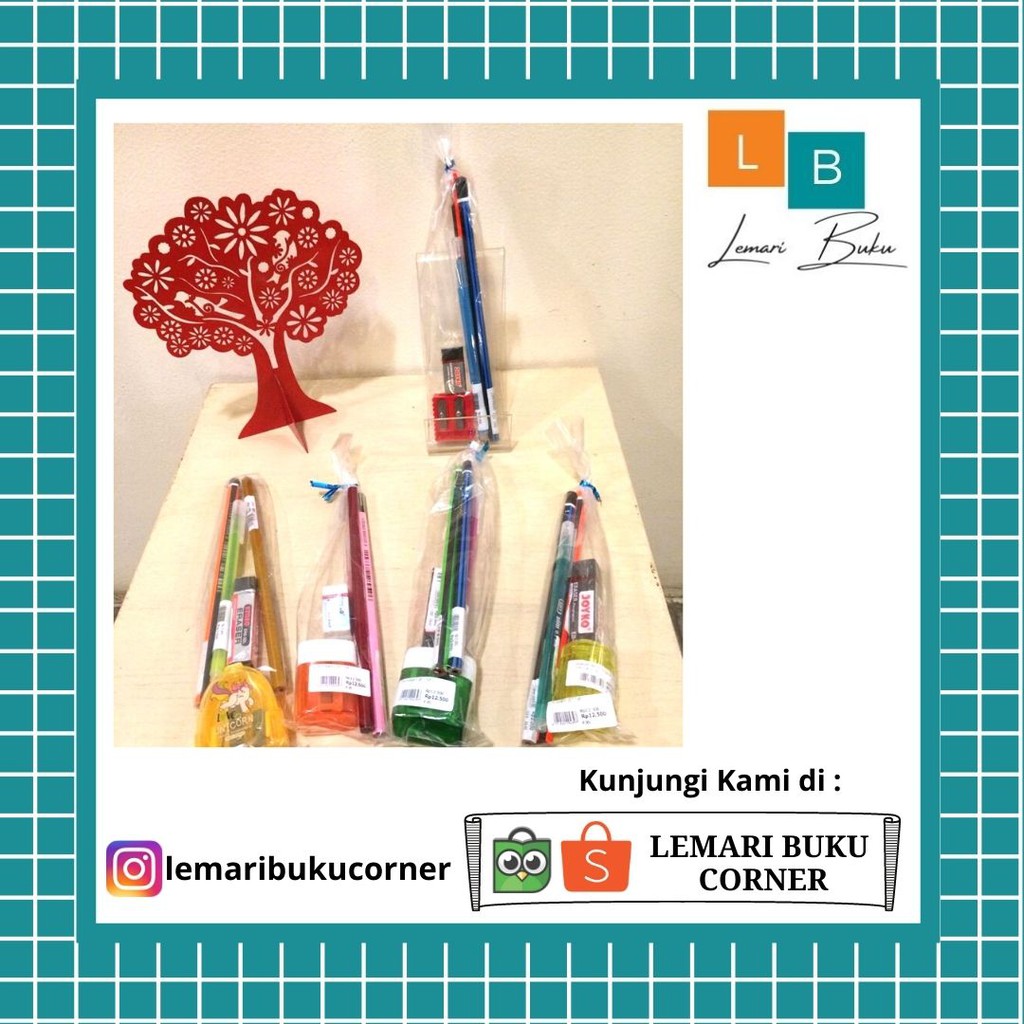 STATIONERY SET 1 paket alat tulis yang disediakan berbagai macam alat tulis seperti : pensil , pulpen, rautan,penghapus.