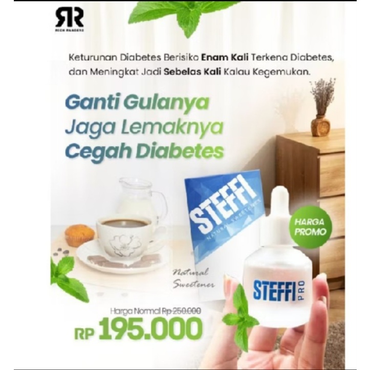 Steffi Pro adalah pengganti gula, pemanis alami 0 kalori dengan ekstrak daun Stevia Paraguay.