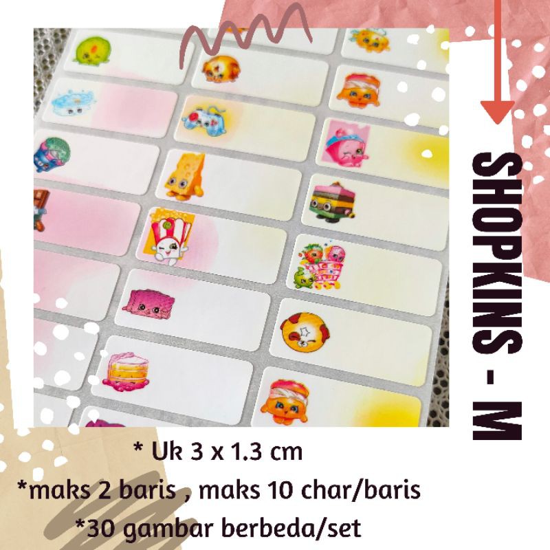 STICKER LABEL NAMA ANTI AIR - MOTIF SHOPKINS / WATERPROOF NAME STICKER
