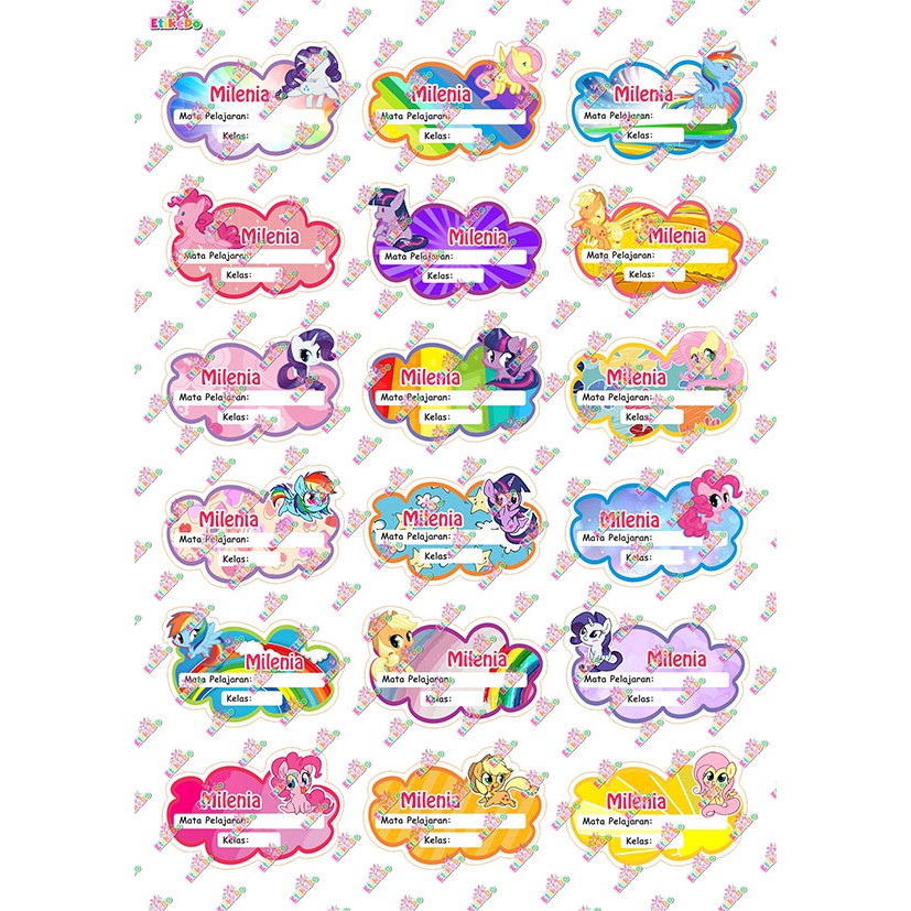 - Sticker label nama Little Pony anti air, anti sobek, dan tidak luntur.