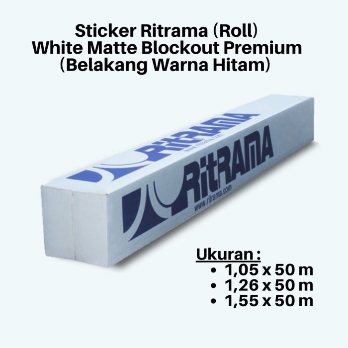 Sticker Ritrama Blockout Premium (Belakang warna hitam) - permukaan White Matte | Tebal 100 Micron
