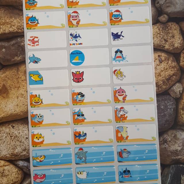 STIKER LABEL NAMA WATERPROOF BABY SHARK