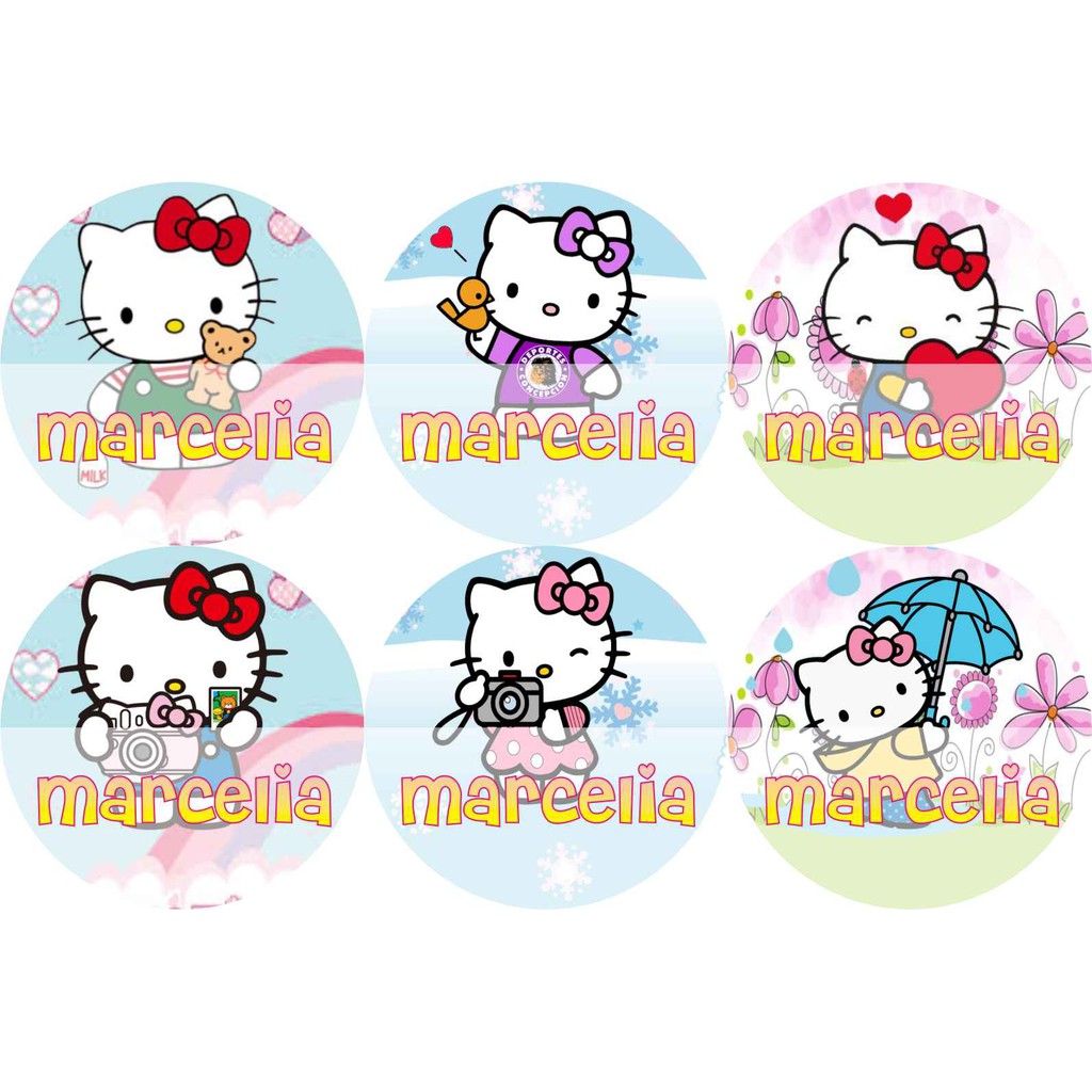 STIKER LABEL NAMA WATERPROOF CIRCLE HELLO KITTY 4
