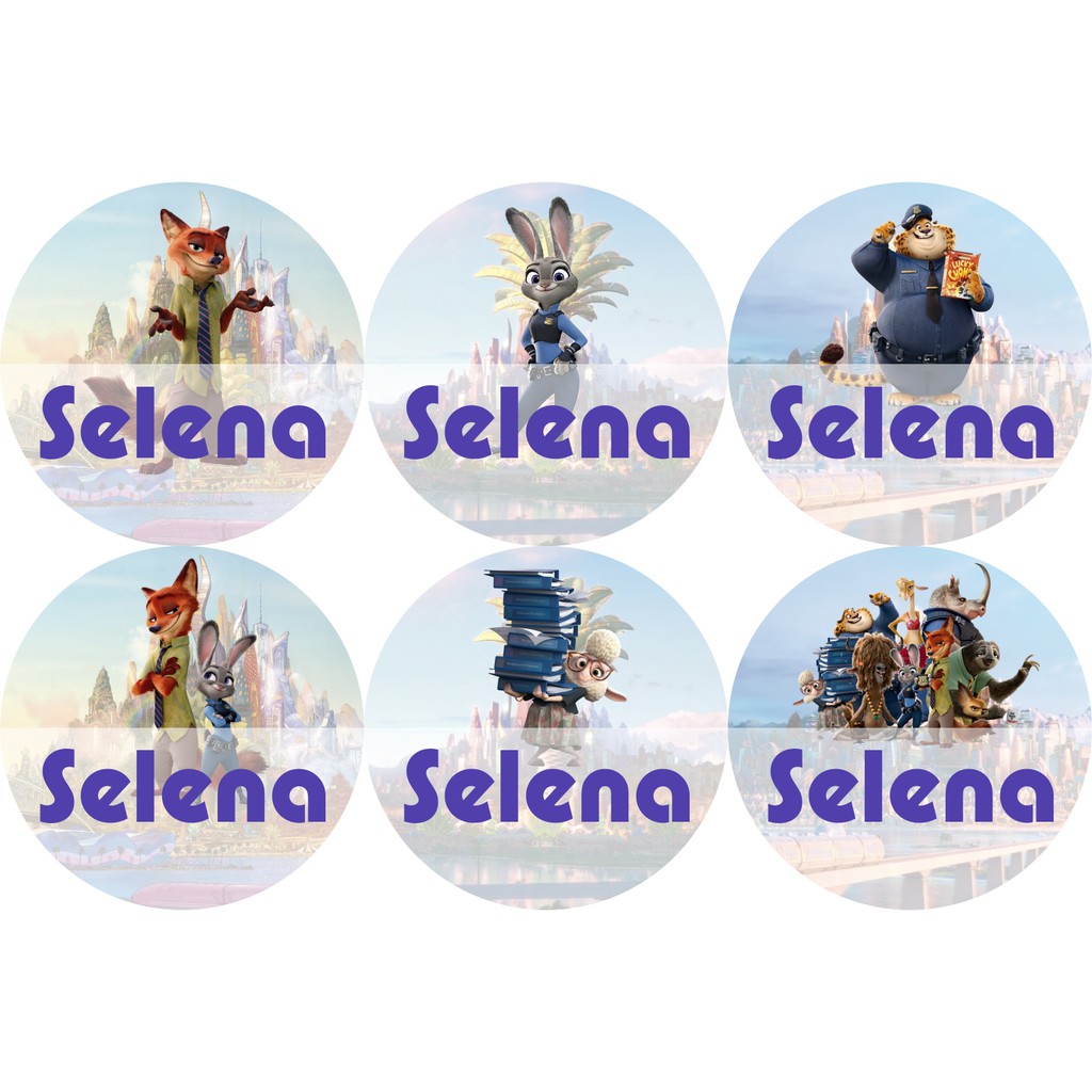 STIKER LABEL NAMA WATERPROOF CIRCLE ZOOTOPIA