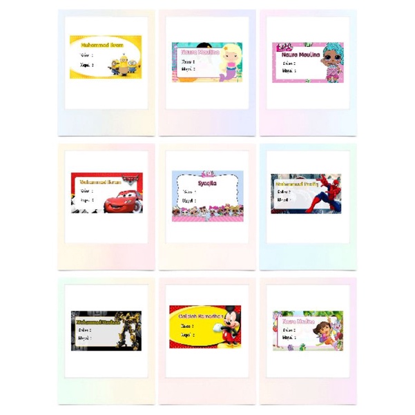 Open Order Stiker label biasa custom nama dan foto untuk baground bebas pilih motif
