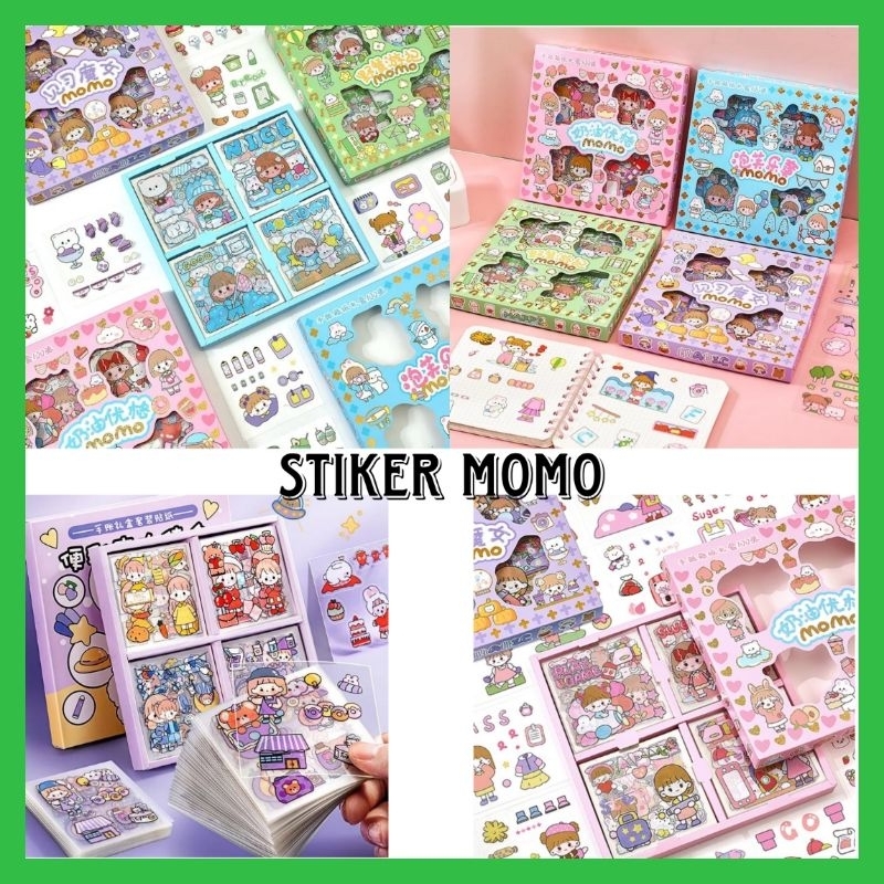 STICKER MOMO, sticker lucu , unik, sangat cantik buat asesoris tempel di buku, gelas, botol, laptop, atau barang lain yang kalian inginkan, sticker ini nati air, sangat bagus & lucu - lucu motif & warna nya