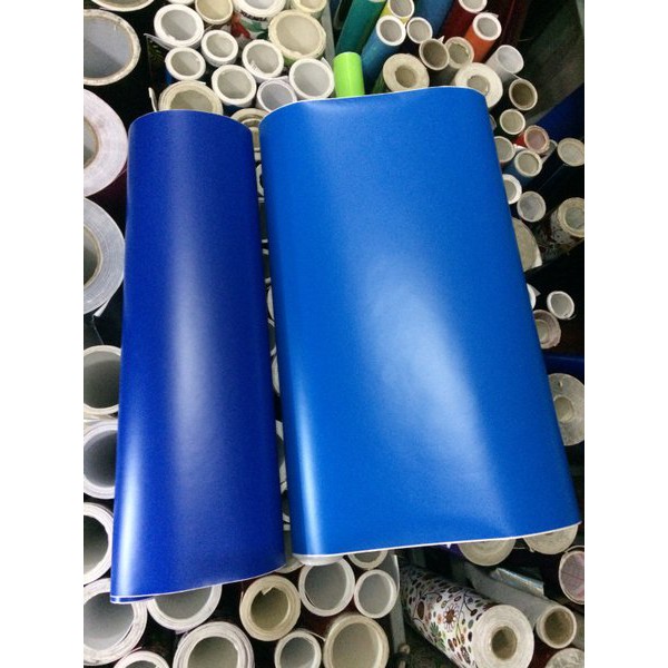 Stiker polos warna biru dof tua (kiri) dan biru dof muda atau biru pos (kanan)