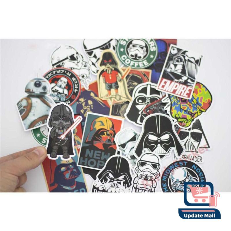 Stiker dengan gambar model karakter star wars untuk menghias tembok rumah, kamar, mobil, mainan, laptop, pintu dan benda lainnya menjadi lebih indah dan menarik dilihat. Stiker sangat mudah untuk ditempel, stiker ini juga tahan akan air, sehingga apabila stiker telah terpasang dan terkena air, stiker tidak mudah rusak.