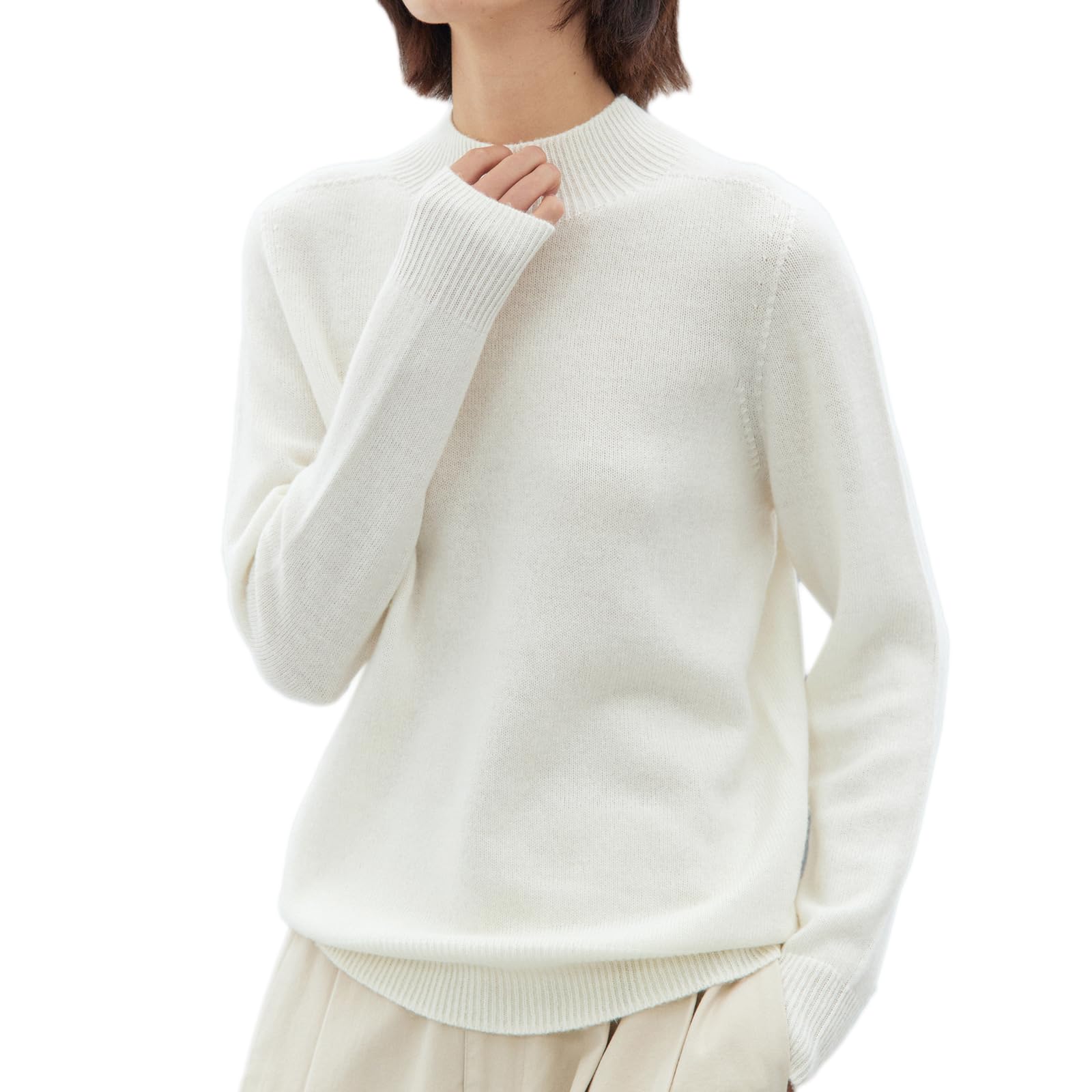 STILLWALKING Вязаный Высокий Длинный Мериносовый Однотонный Женский Свитер, Горловина, Рукав, 100% Шерсть, Простой, Цветной, Осень/Зима (JP, Алфавит, M, Белый) белый